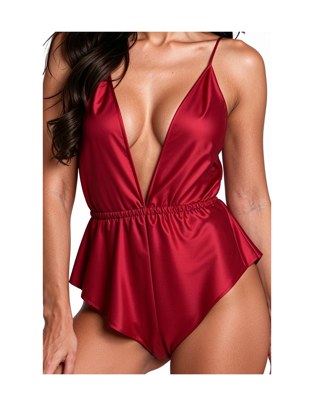 - Body sexy en tissu satiné bordeaux