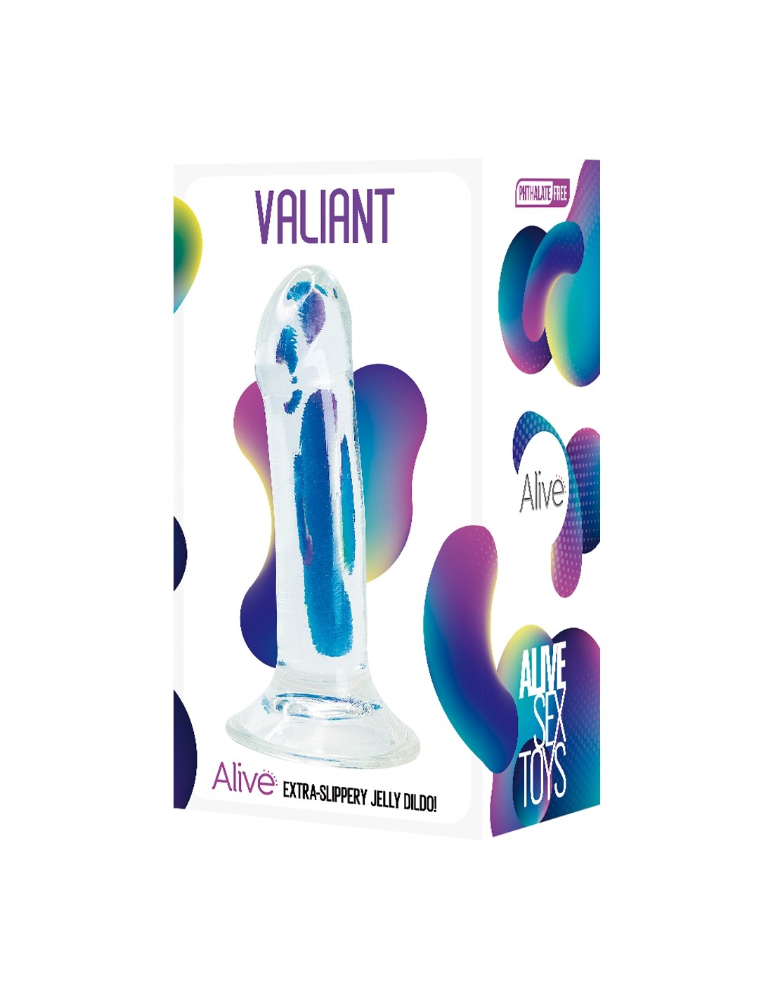 Le gode "Valiant" de la marque Alive est un dildo avec des dimensions généreuses (18 x 4,5 cm), en matière Jelly lisse et extra-glissante qui comblera les amateurs de sextoys trapus.