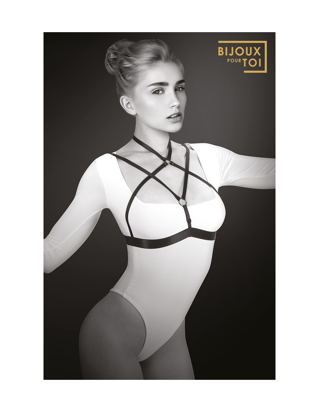Harnais glamour tendance fetish pour sublimer votre poitrine et votre décolleté, en matière élastique, marque Bijoux Pour Toi.