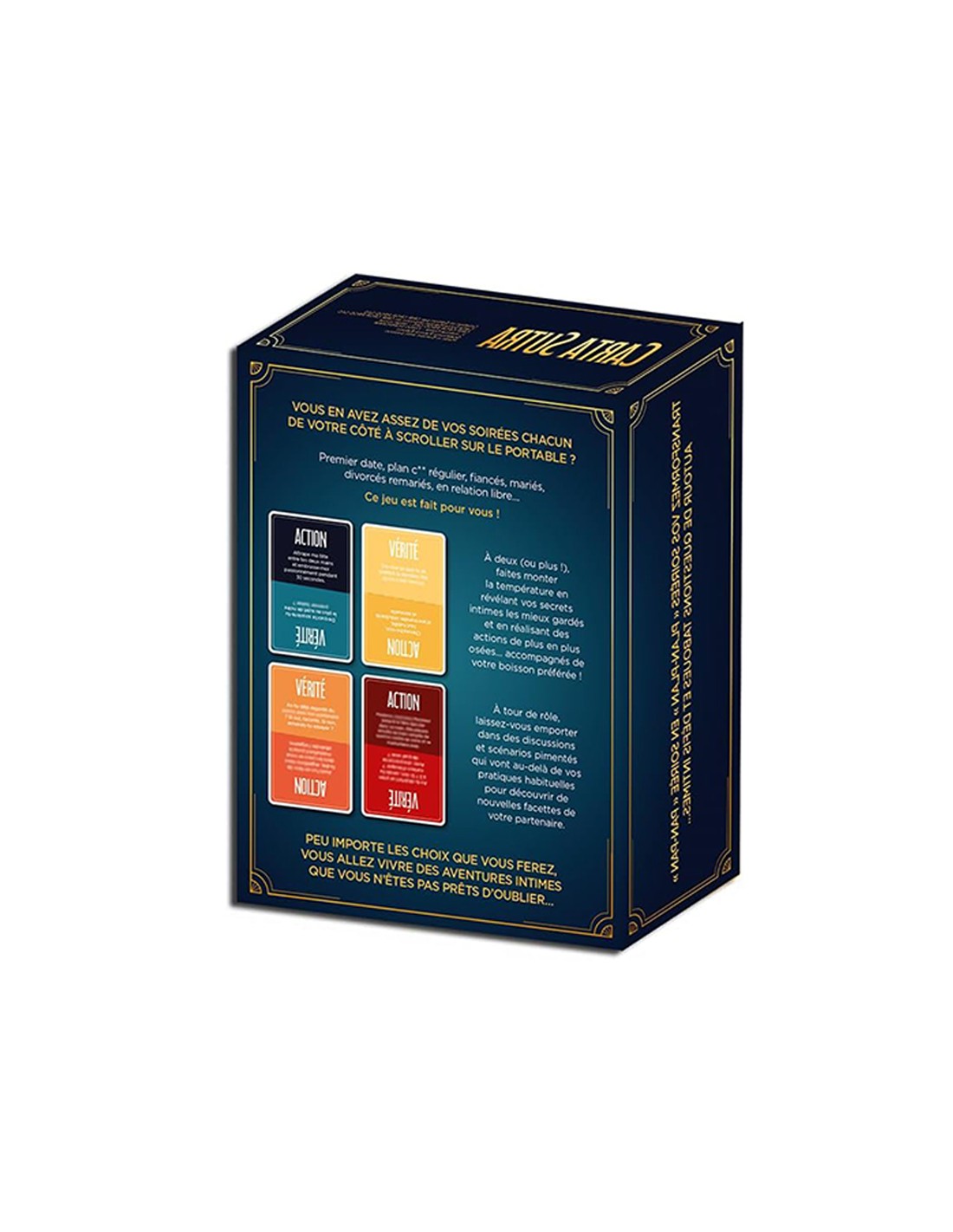 Vous en avez marre de passer vos soirées chacun de votre côté à scroller sur le portable ? Carta Sutra Action ou Vérité est fait pour vous ! Bien plus quun jeu, cest une expérience intense et sensuelle !