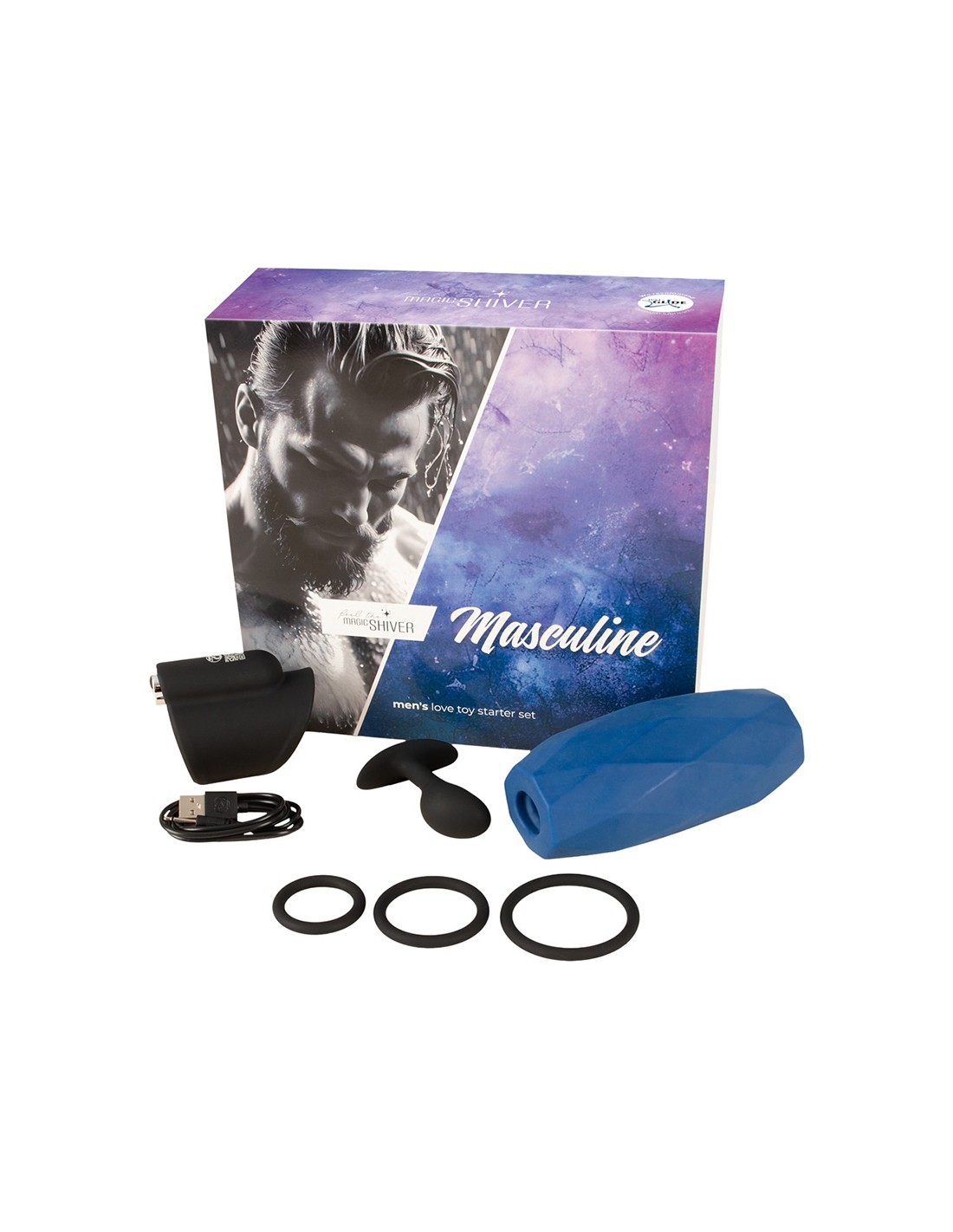 Le Men Love Toy Starter Set Masculine exclusif de Magic Shiver réunit 4 jouets de qualité supérieure pour hommes dans un coffret élégant : un vibro-masturbateur, un plug anal, un trio d'anneaux péniens et un masturbateur Stroker. Ce set invite à explorer de nouvelles facettes du plaisir et à vivre des divertissements sexuels passionnants, seul ou à deux. Ces jouets faciles à utiliser ont été spécialement conçus pour les néophytes et permettent d'entrer facilement et avec plaisir dans le monde des jouets intimes.