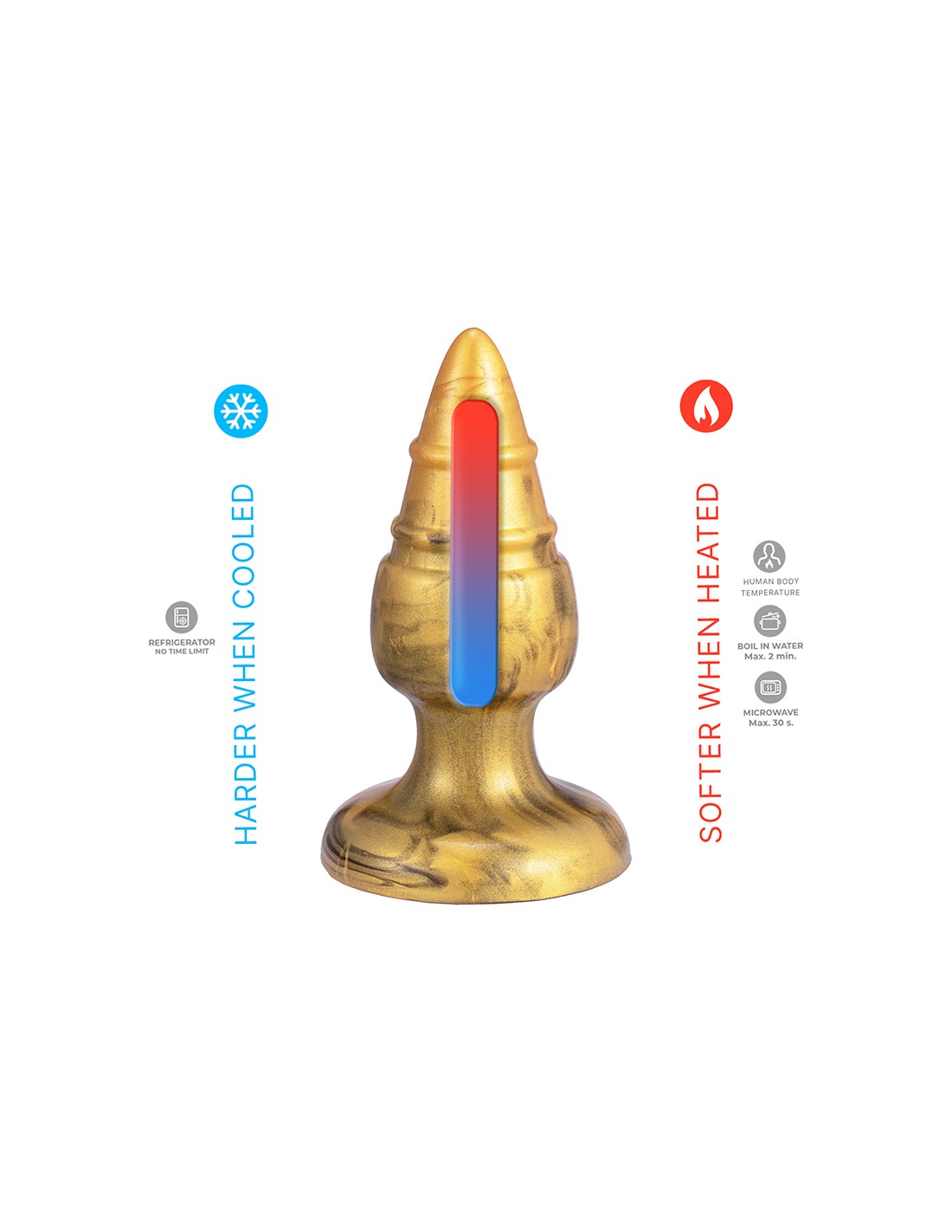 Thermo réactif : Pour plus de sensations, le sextoy peut être placé au réfrigérateur pour le rendre plus ferme ou au four à micro-ondes moins de 60 secondes pour le rendre plus souple.