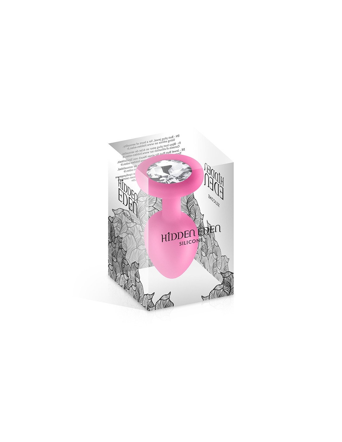 La marque Hidden Eden vous propose de découvrir ce superbe plug bijou décoré dun strass rond transparent. Ce modèle fabriqué en silicone rose pèse 30 grammes pour une longueur totale de 7,2 cm et un diamètre moyen de 2,7 cm.