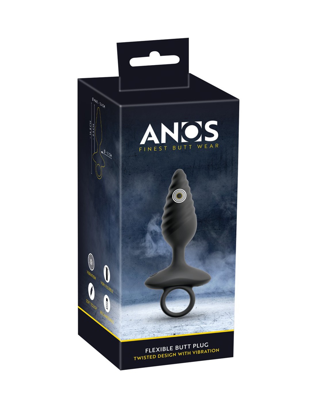 Le plug anal vibrant "Flexible Butt Plug Twisted Design with Vibrations" de la marque ANOS allie stimulation anale intense, confort et jeu sûr. Le design en spirale prononcé du Vibro-Plug n'est pas seulement esthétique, mais aussi un amplificateur de sensations intenses. Chaque insertion et retrait procure des stimulations inimitables. La base large du plug et son anneau de maintien pratique garantissent un jeu sûr sans glisser - en solo ou à deux.