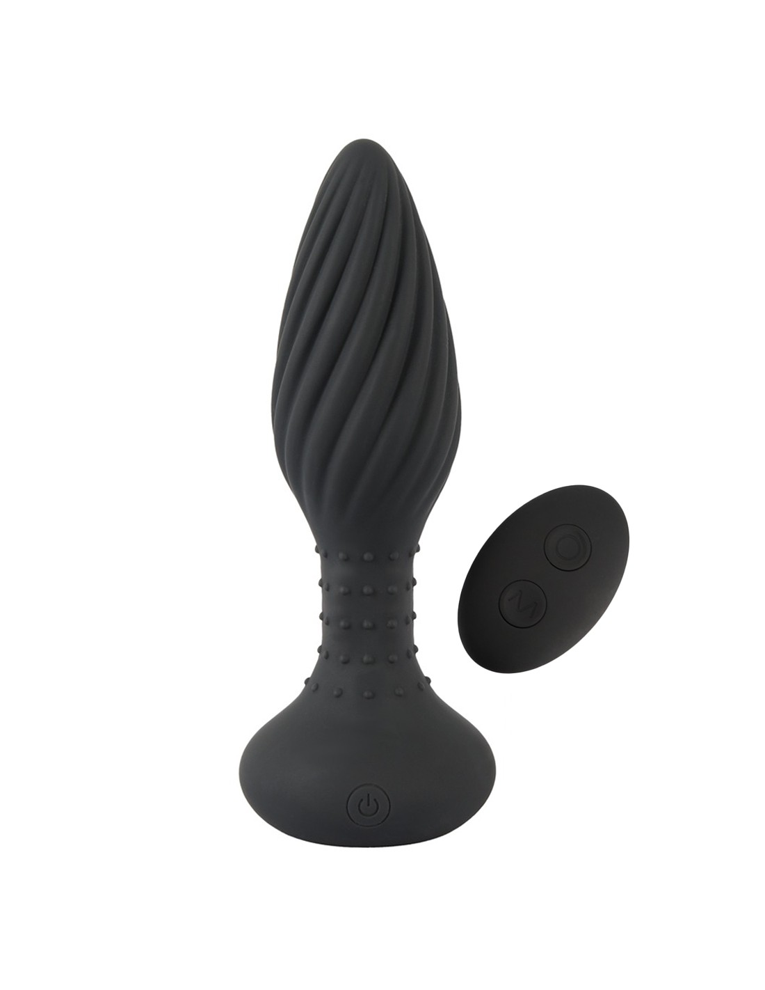 Plug anal vibrant télécommandé avec design en spirale, vibrations et perles rotatives, pour un massage anal intensif.