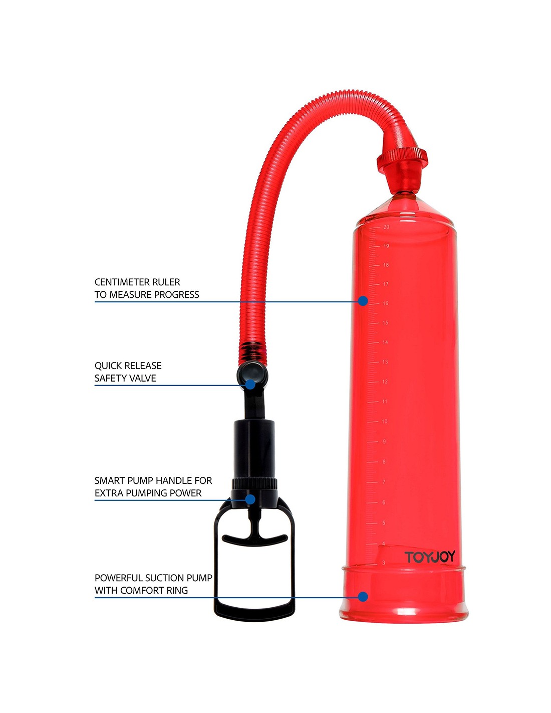 Améliorez la taille de votre pénis en toute simplicité avec le développeur de pénis ToyJoy Power Pump rouge.