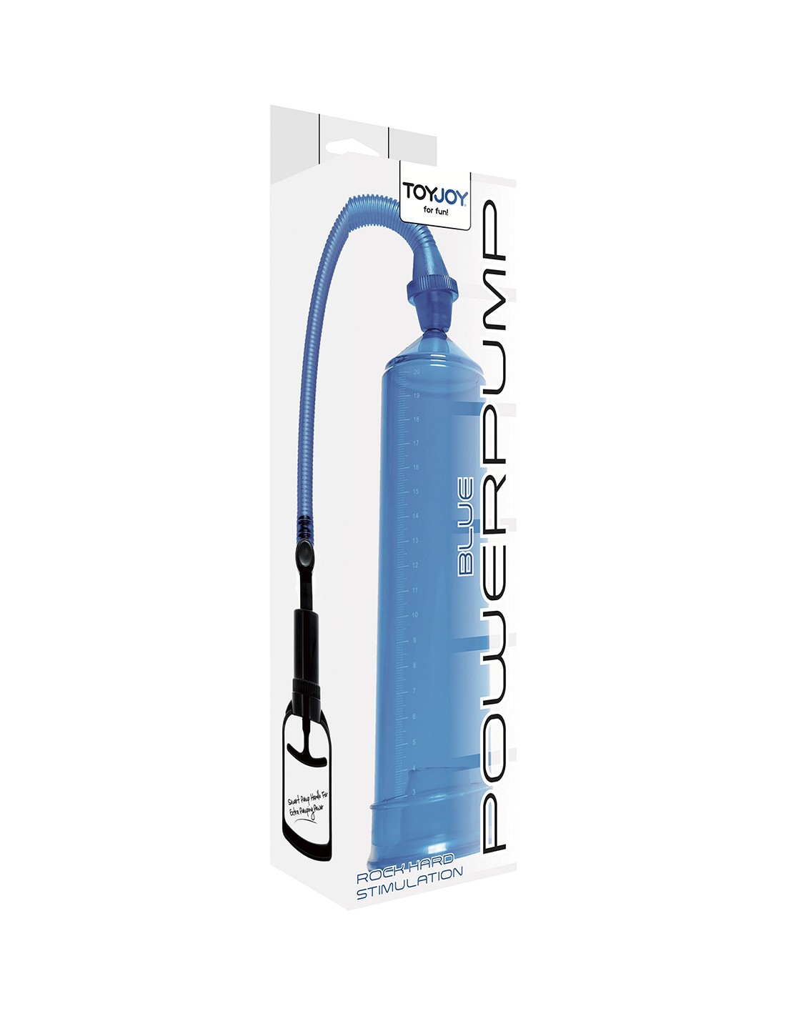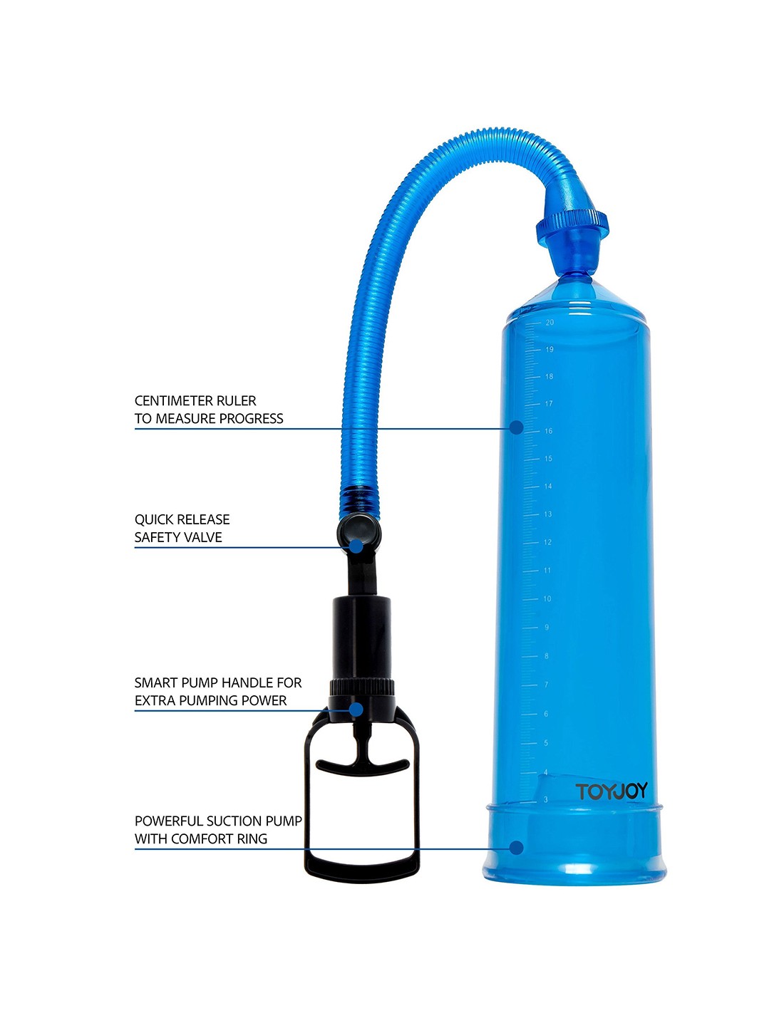 Améliorez la taille de votre pénis en toute simplicité avec le développeur de pénis ToyJoy Power Pump bleu.