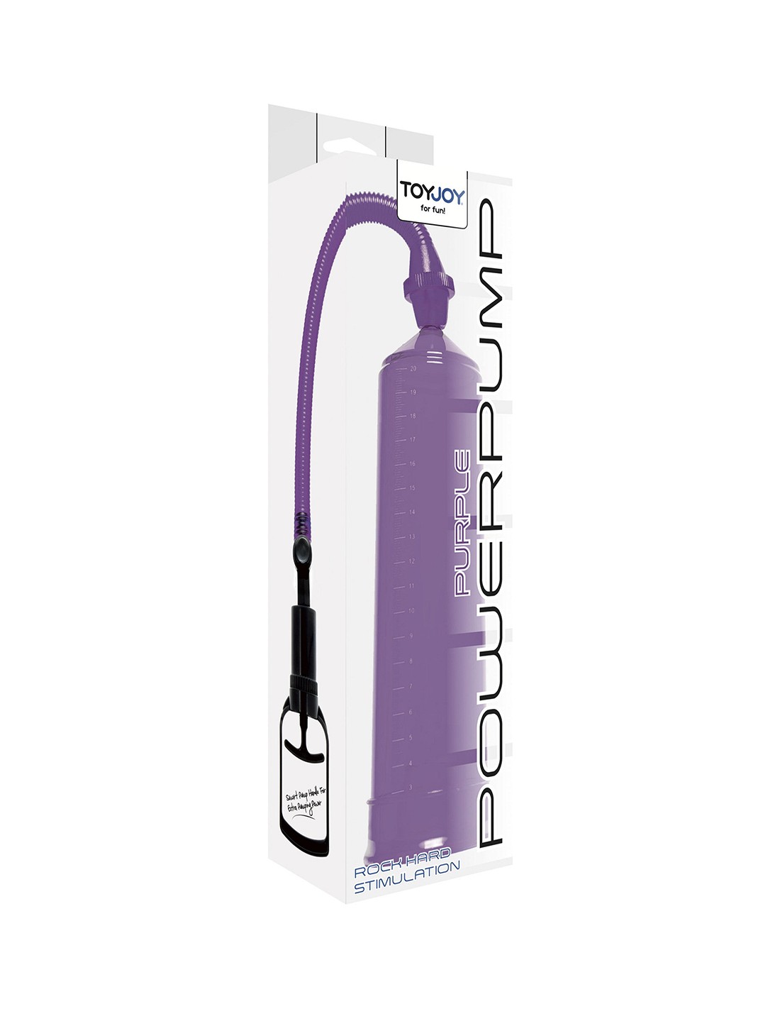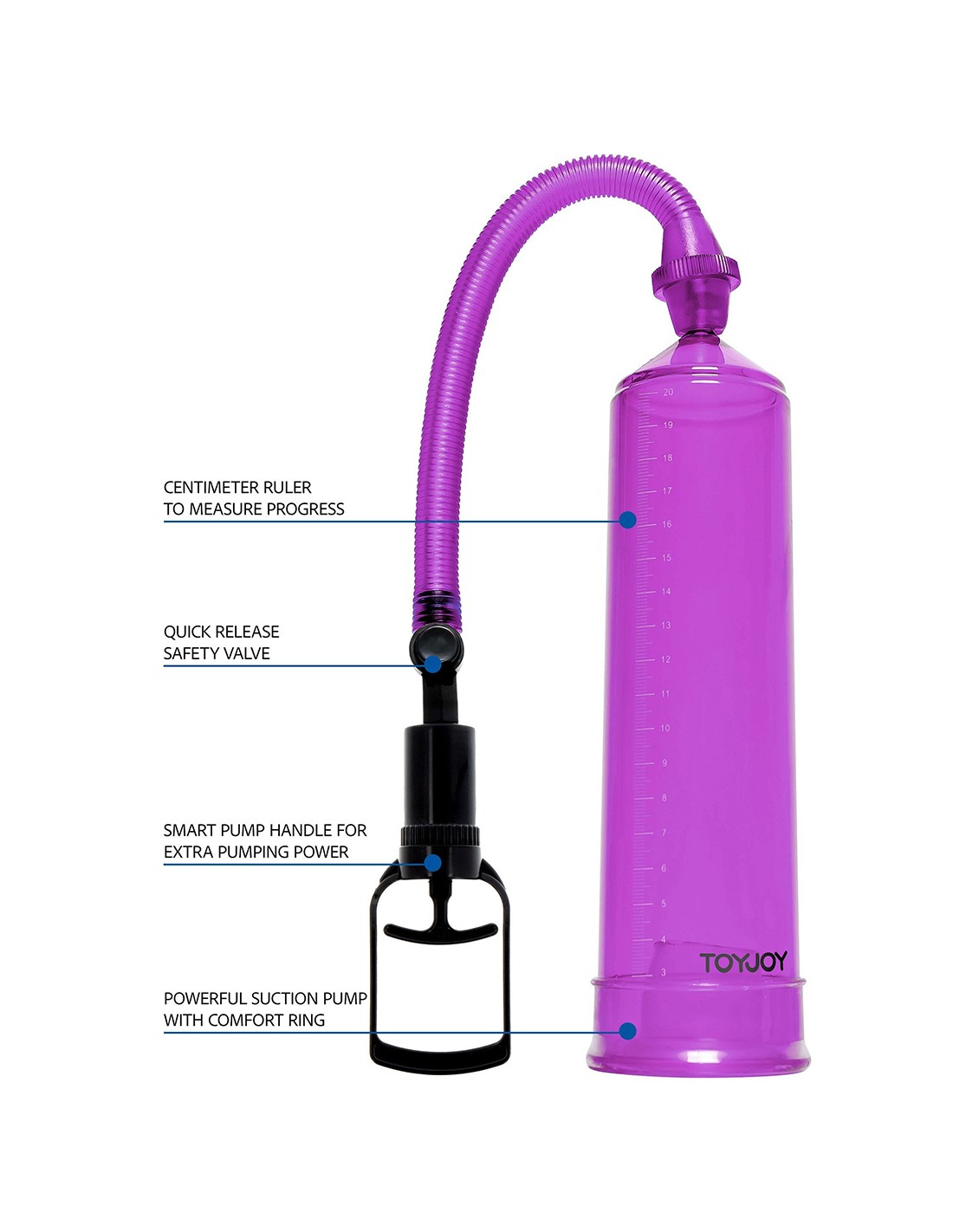 Améliorez la taille de votre pénis en toute simplicité avec le développeur de pénis ToyJoy Power Pump violet.