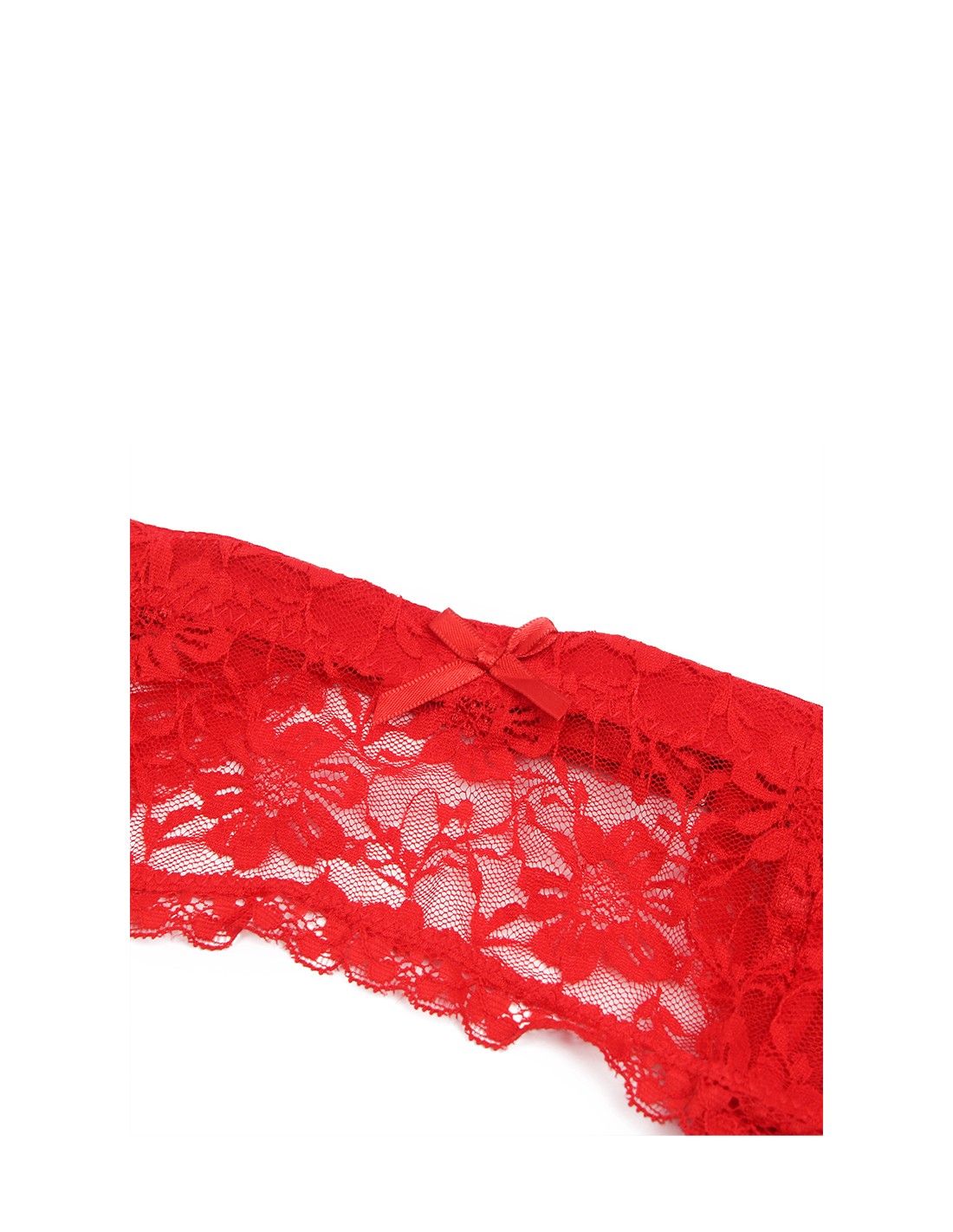 Ensemble porte-jarretelles et string en dentelle résille rouge, conçu pour sublimer la silhouette avec sensualité et élégance.