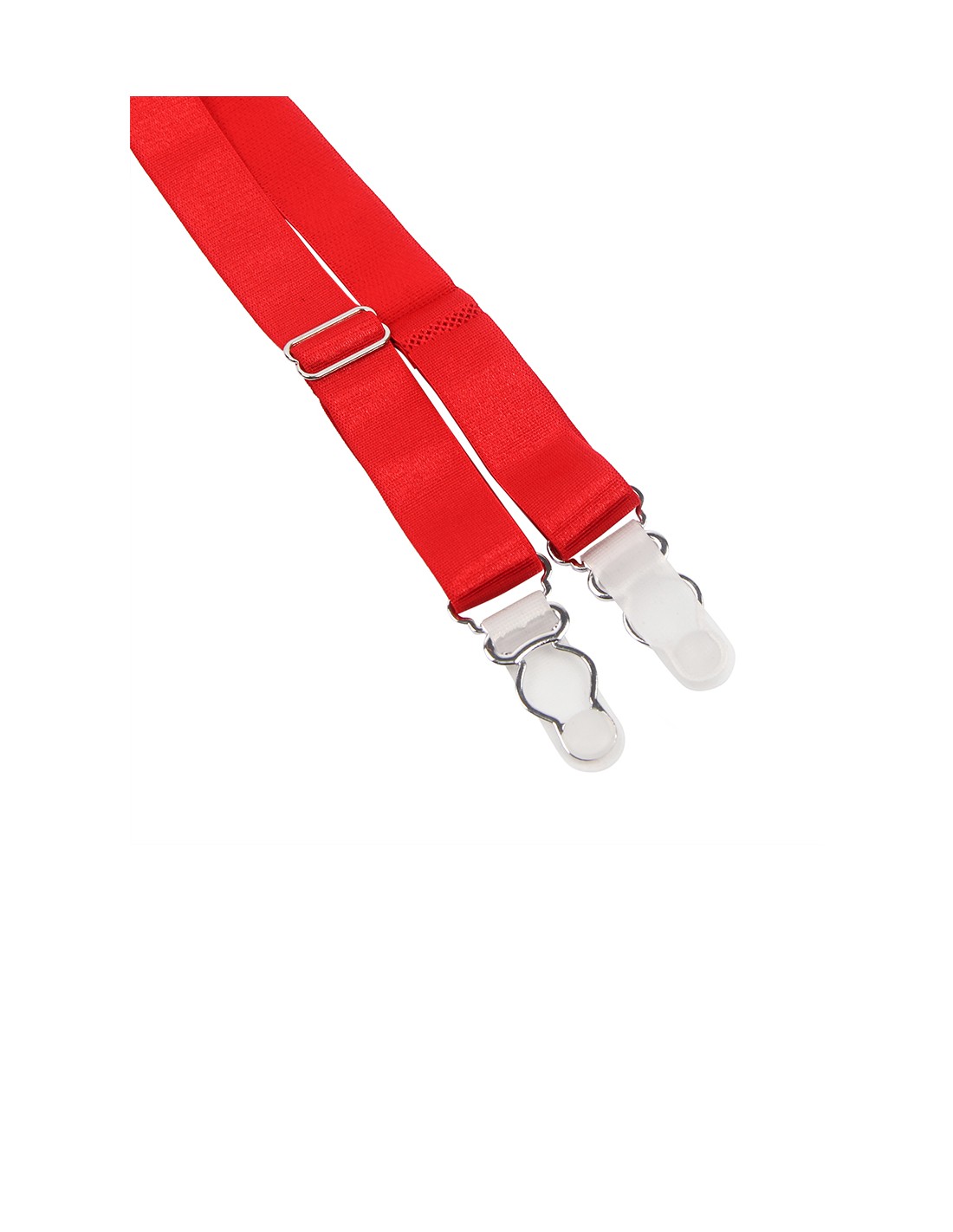 Ensemble porte-jarretelles et string rouge en dentelle résille, avec ceinture ajustable et quatre jarretelles