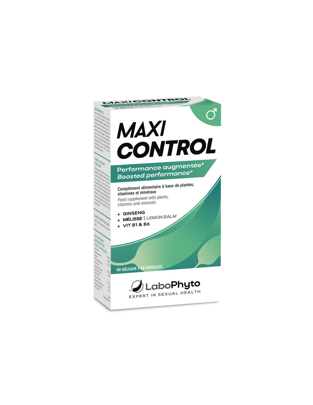 Créé pour les hommes qui font face à des soucis déjaculation précoce, qui souhaitent prolonger leurs rapports sexuels ou qui sont stressés par leurs performances sexuelles, Maxi Control gélules permet de contrôler le stress émotionnel, aide à retarder léjaculation et à prolonger le plaisir des deux partenaires.