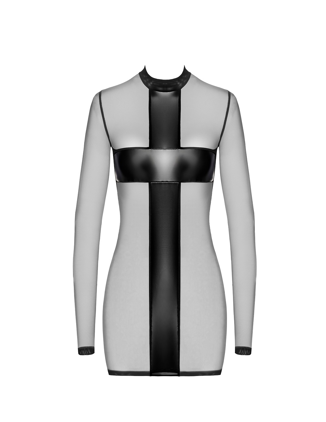 Matière : Confectionnée en tulle souple et léger, cette robe est ornée d'audacieux empiècements croisés en powerwetlook qui soulignent les formes naturelles du corps. L'association de matières offre à la fois un charme visuel et un confort optimal.