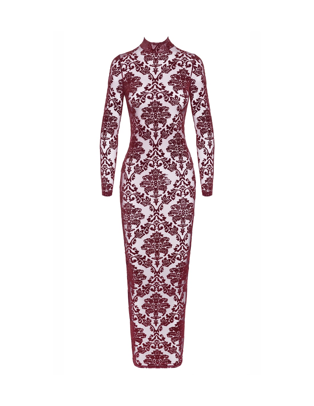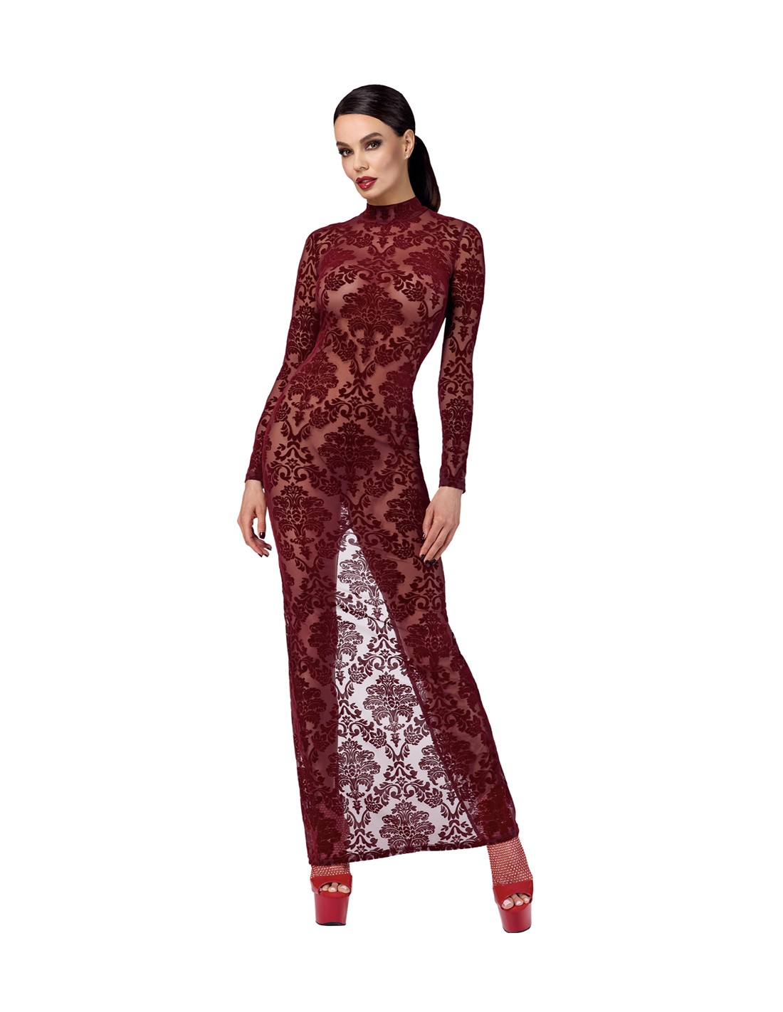 Testez votre pouvoir de séduction avec cette magnifique robe longue bordeaux transparente !