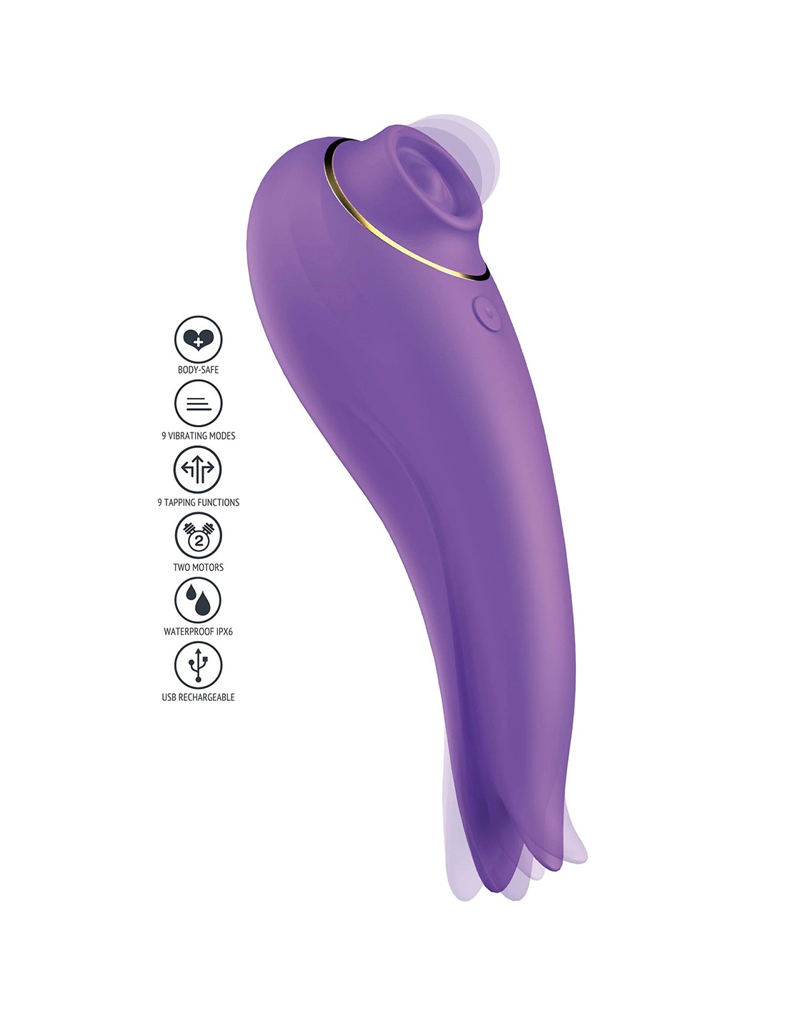 Ce sextoy Premium dédié au plaisir féminin offre une double stimulation grâce à sa technologie de tapotement brevetée et ses deux languettes ludiques. La fonction de tapotement procure une stimulation clitoridienne précise, tandis que les languettes flexibles offrent une sensation douce et excitante aux mamelons ou autres zones érogènes.